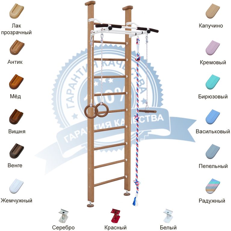 Детский спортивный комплекс Alice один из лучших домашних комплексов KARUSSELL. Он состоит из шведской стенки, турника и укомплектован навесным оборудованием для детей: канат, гимнастические кольца и тарзанка. Он имеет сборно-разборную конструкцию, в ее основе детали из дерева - стойки лестницы из сосны, ступени из березы.