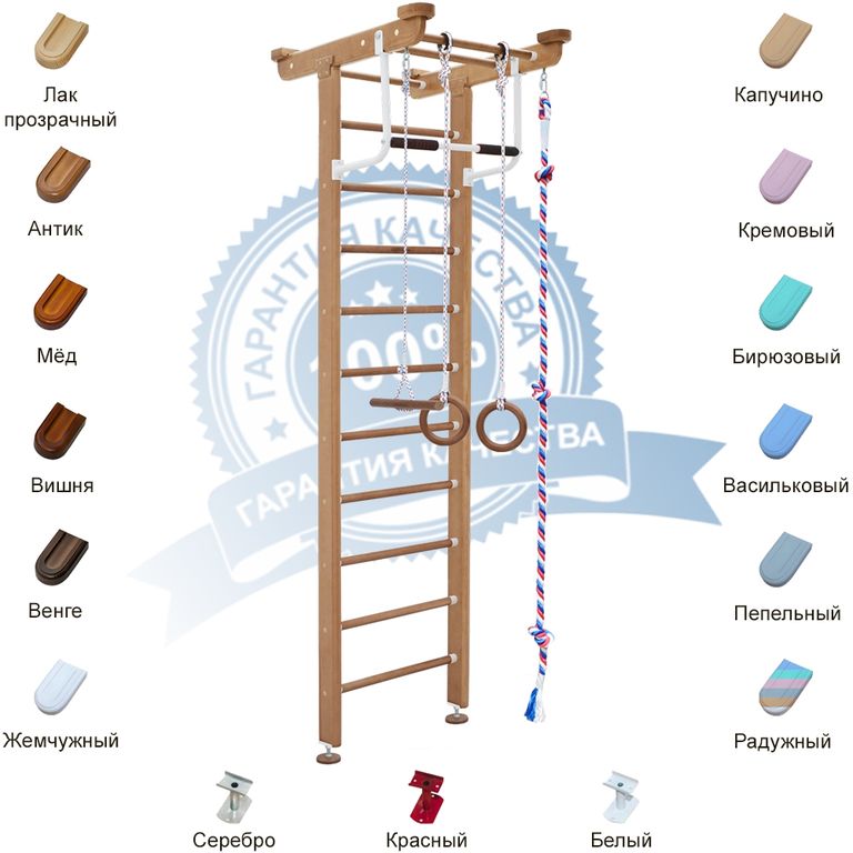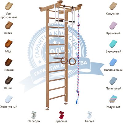 Детский спортивный комплекс устанавливается в распор между полом и потолком с турником, канатом, тарзанкой и гимнастическими кольцами