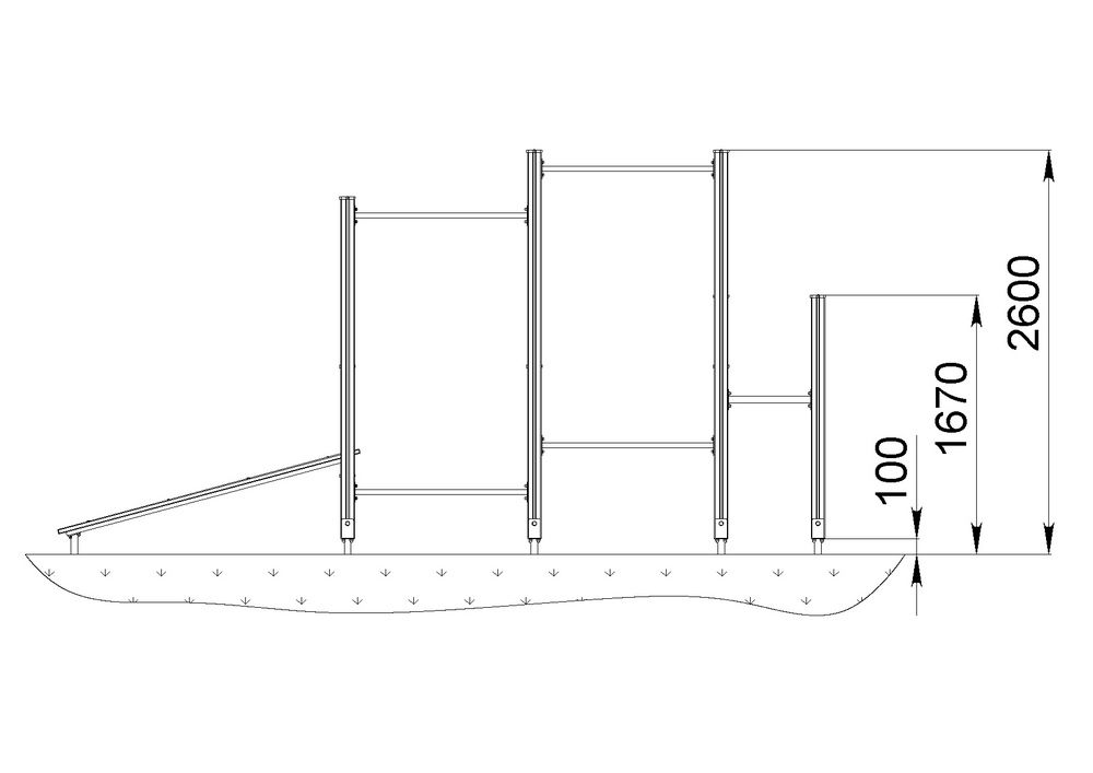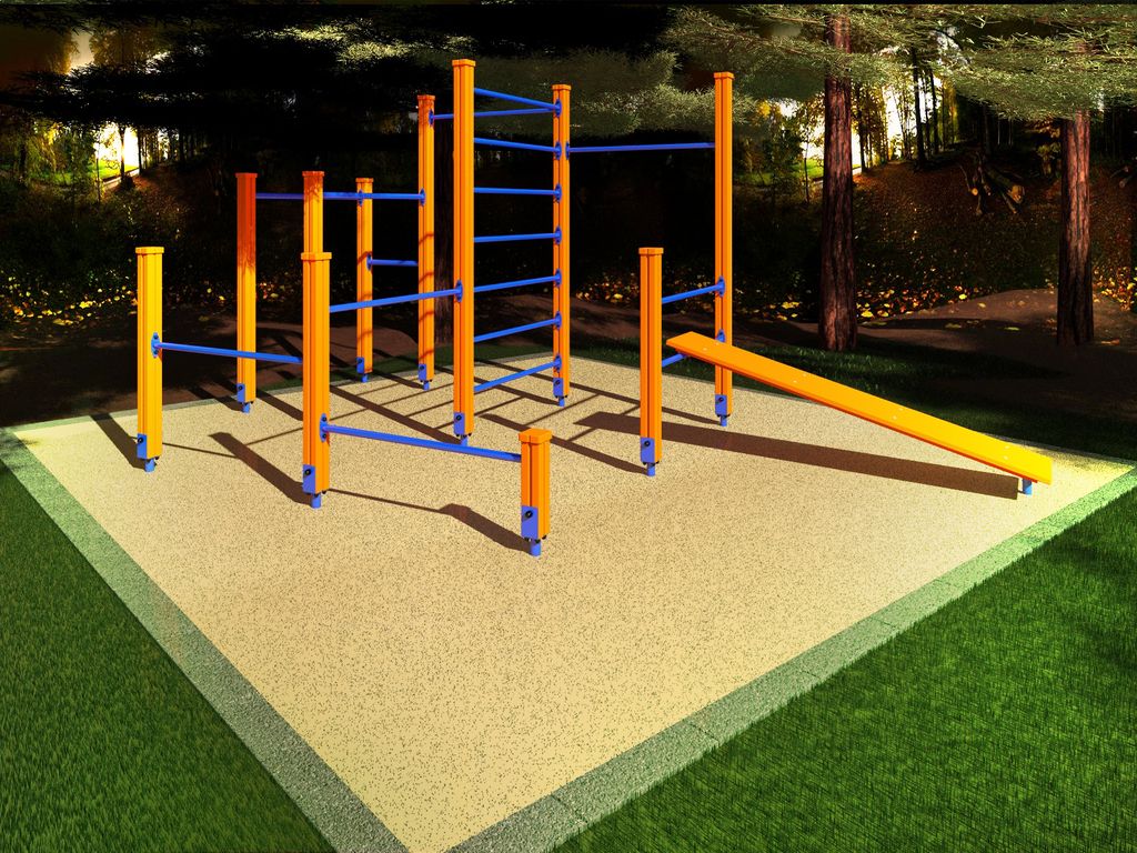 | Включает: | Шведская стенка, 2 турника разной высоты, скамья наклонная, брусья, 3 турника для отжимания |