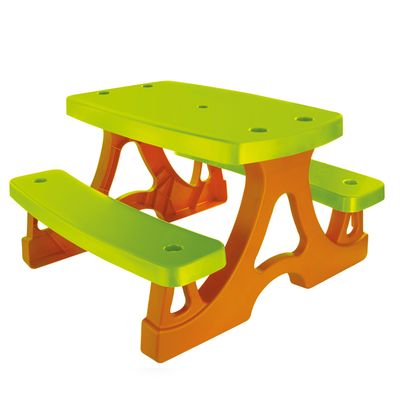 Столик для пикника Mochtoys 10722 подходит для использования как в помещении, так и на улице. За таким удобным столиком можно не только кушать, но и рисовать, лепить, играть в настольные игры и прекрасно проводить время на свежем воздухе! Он просто и быстро собирается и сразу готов к использованию. В разобранном виде столик практически не занимает места и помещается в багажник любого автомобиля. Данная модель выполнена из гипоаллергенного пластика ярких цветов. Конструкция не имеет острых углов, поэтому совершено безопасна для детей.
