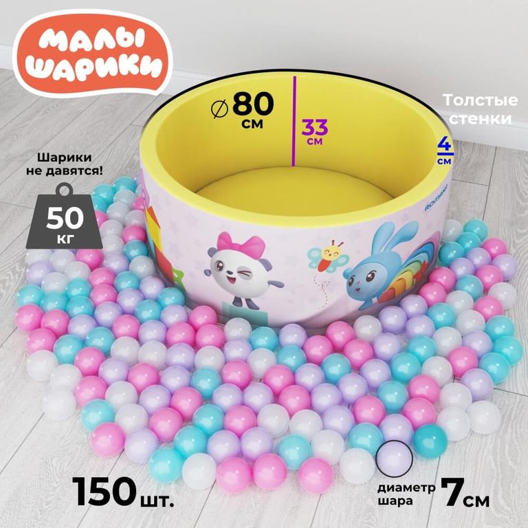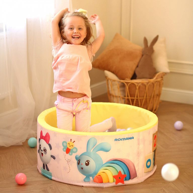 Сухой бассейн с Малышариками станет отличным подарком для активных ребят. Он может быть использован как отдельная игровая зона, либо в сочетании с другими детскими спортивными комплексами от ROMANA.