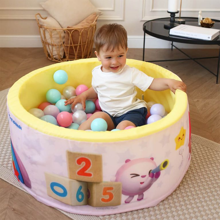 Ребенок сразу же узнает любимых героев из популярного мультфильма. В зависимости от цвета бассейна персонажи представлены в различном дизайне: голубой - профессии, желтый - времена года, розовый - игрушки, салатовый - распорядок дня.