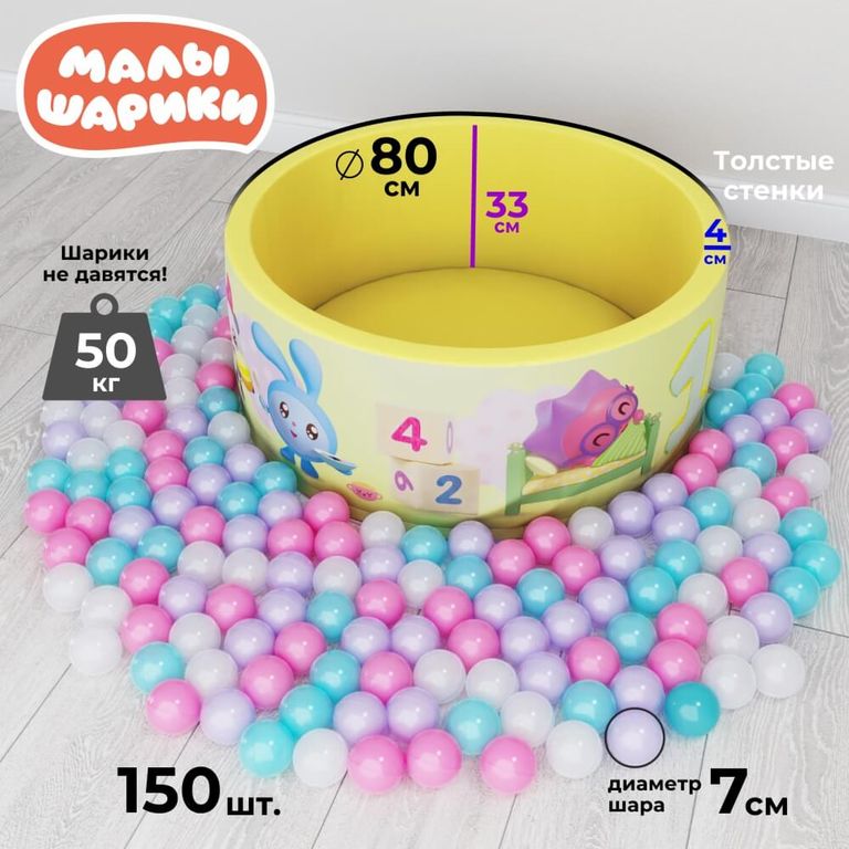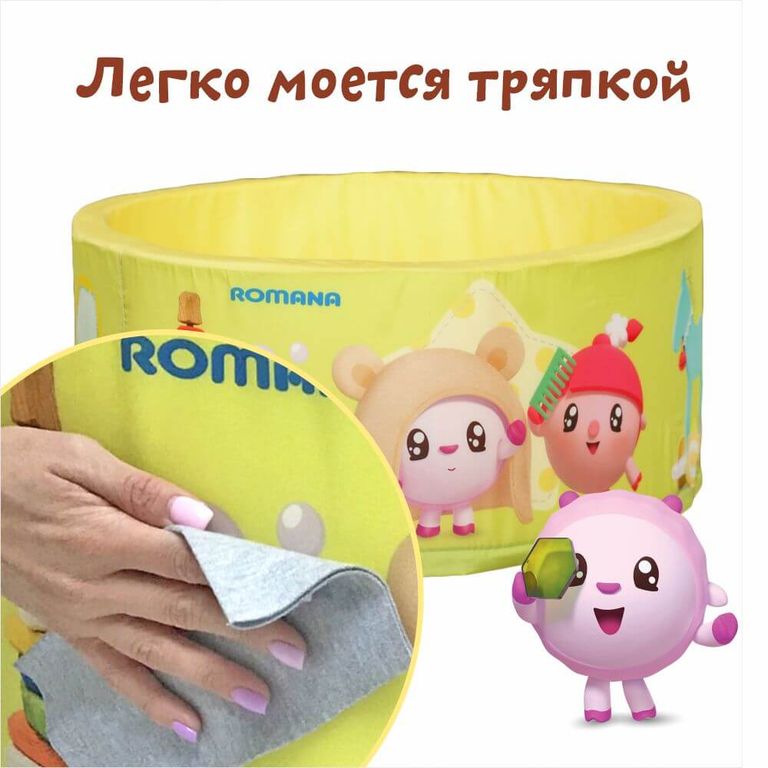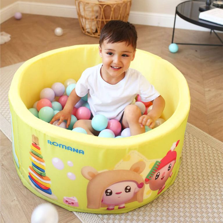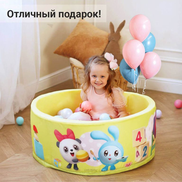 Сухой бассейн с Малышариками станет отличным подарком для активных ребят. Он может быть использован как отдельная игровая зона, либо в сочетании с другими детскими спортивными комплексами от ROMANA.