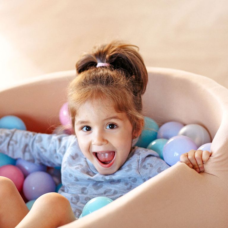 Это достаточно стильный элемент интерьера, который не займет много места в помещении. Высота бортиков составляет 33 см, что позволяет детям беспрепятственно залезать в бассейн, отдыхать и играть с шариками, развивая при этом ловкость и моторику рук.