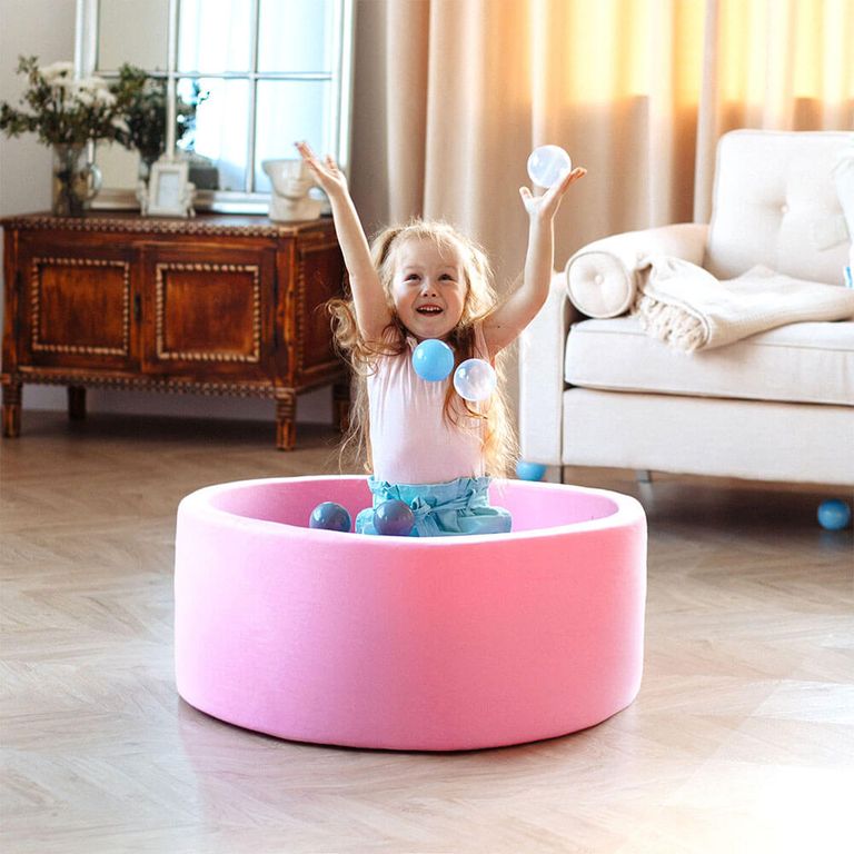 Это достаточно стильный элемент интерьера, который не займет много места в помещении. Высота бортиков составляет 33 см, что позволяет детям беспрепятственно залезать в бассейн, отдыхать и играть с шариками, развивая при этом ловкость и моторику рук.