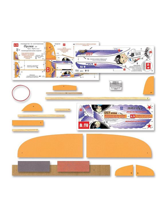 Набор материалов и заготовок для изготовления свободнолетающей схематической модели планера.