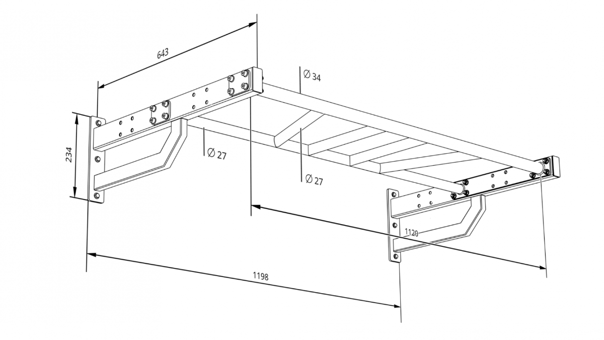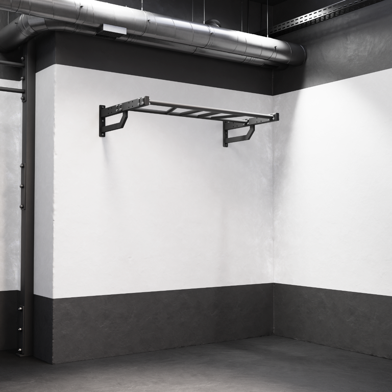 Настенный турник с максимальным выносом от стены 600 мм и перекладиной «Мультихват». Данная перекладина позволяет спортсмену прорабатывать различные группы мышц. Эту модель можно доукомплектовать прямой перекладиной или базовой перекладиной для установки сменного оборудования.