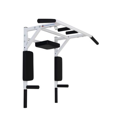 Данный снаряд подойдет для профи, тех, кто хочет поддерживать форму, начинающих и даже детей. Настенный турник-брусья-пресс 3 в 1 имеет удобную конструкцию, позволяя прорабатывать мышцы живота с помощью специальной скамьи, широкие и узкие ручки для удобного хвата и всесторонней проработки спины и специальные брусья для отжиманий и проработки трицепсов.