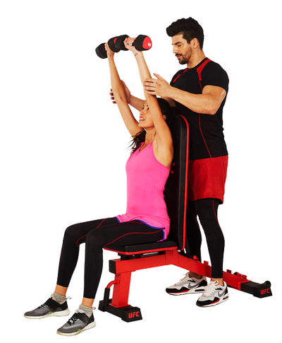 Скамья универсальная UFC Deluxe для выполнения упражнений с гантелями и штангой.