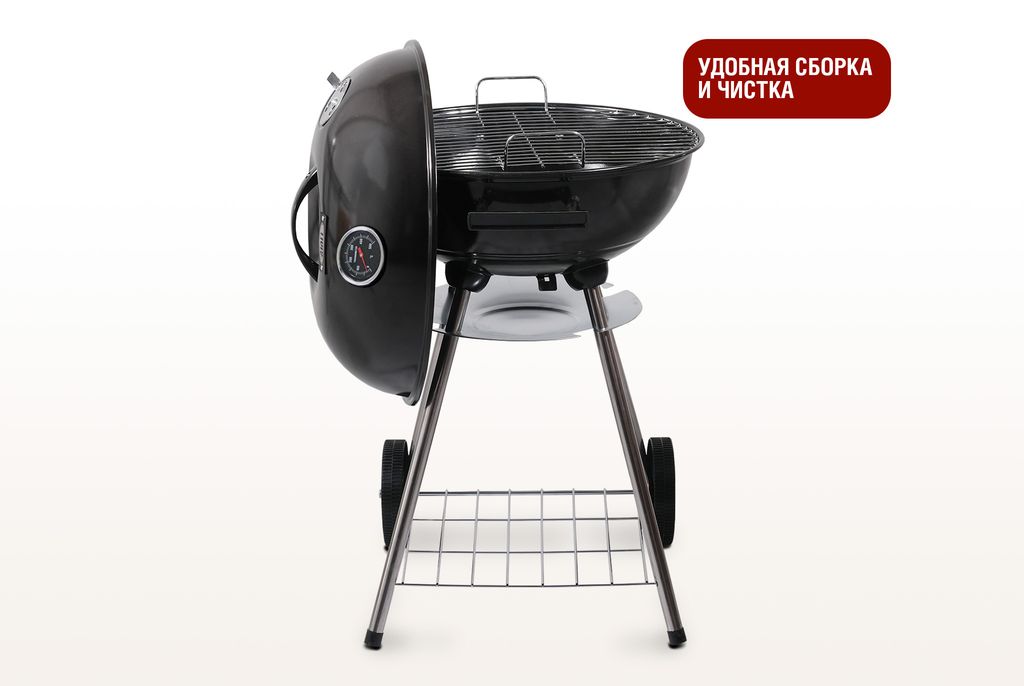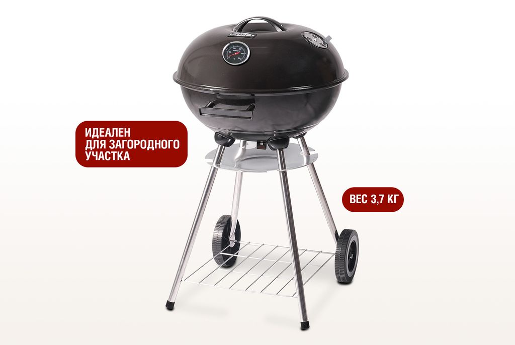 Гриль прост в обращении. Классическая сферическая форма гриля позволяет добиваться лучших результатов в приготовлении пищи. DERBY TERM идеально подойдет как для загородного отдыха на даче, так и для совместного проведения пикника с родными и друзьями на природе. Поверхность корпуса и съемной крышки покрыта фарфоровой эмалью. Диаметр жаровни - 43,5 см даст простор для кулинарного творчества. Алюминиевая тарелка предназначена для сбора золы. Для передвижения DERBY TERM на ножках присутствуют два колеса. Купить угольный гриль можно из любого города, сделав заказ в нашем интернет-магазине.