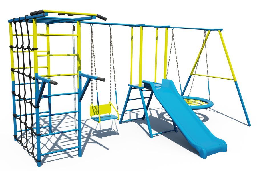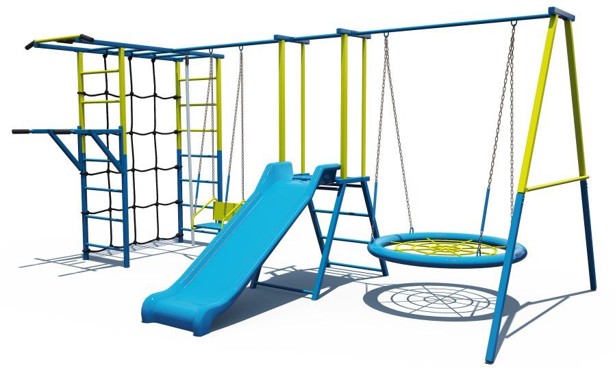 Уличный детский спортивный комплекс IMTRAINER ЕГОЗА - это целый мир развлечений около дома или дачи. На этом комплексе могут резвиться сразу целая компания детей: пока один качается на качелях-гнездо, другой качается на качеле-люльке, третий скатывается с горки, а четвертый лазает по паутине и так далее!