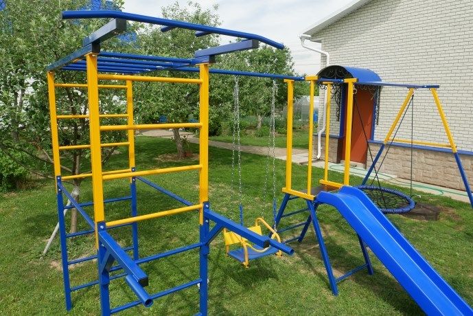 Бетонированные или выложенные плиткой поверхности исключаются. Этот комплекс предназначен для использования на дачном участке и не должен использоваться в общественных местах, таких как: парки, общественные игровые площадки, дворы. Установка комплекса производится с обязательным бетонированием опорных стоек в земле на глубину примерно 20 см (или на высоту штыка лопаты).
