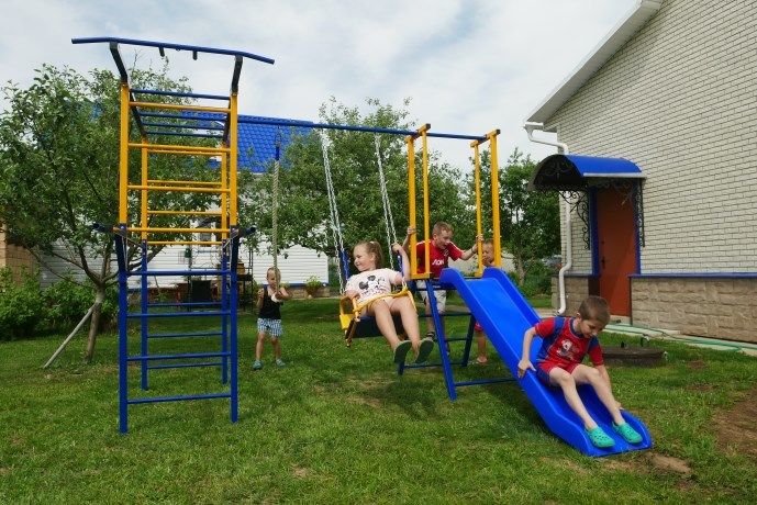 Бетонированные или выложенные плиткой поверхности исключаются. Этот комплекс предназначен для использования на дачном участке и не должен использоваться в общественных местах, таких как: парки, общественные игровые площадки, дворы. Установка комплекса производится с обязательным бетонированием опорных стоек в земле на глубину примерно 20-25 см (или на высоту штыка лопаты).