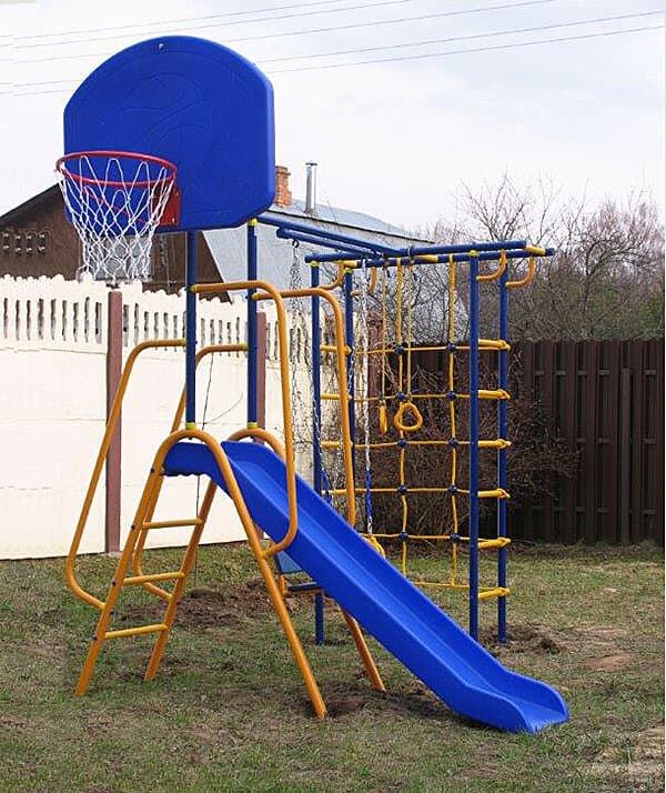 Вы можете купить уличный комплекс Малыш-Дачник с горкой, сеткой для лазания и баскетбольным кольцом в Воронеже в интернет-магазине Спортсмен36!